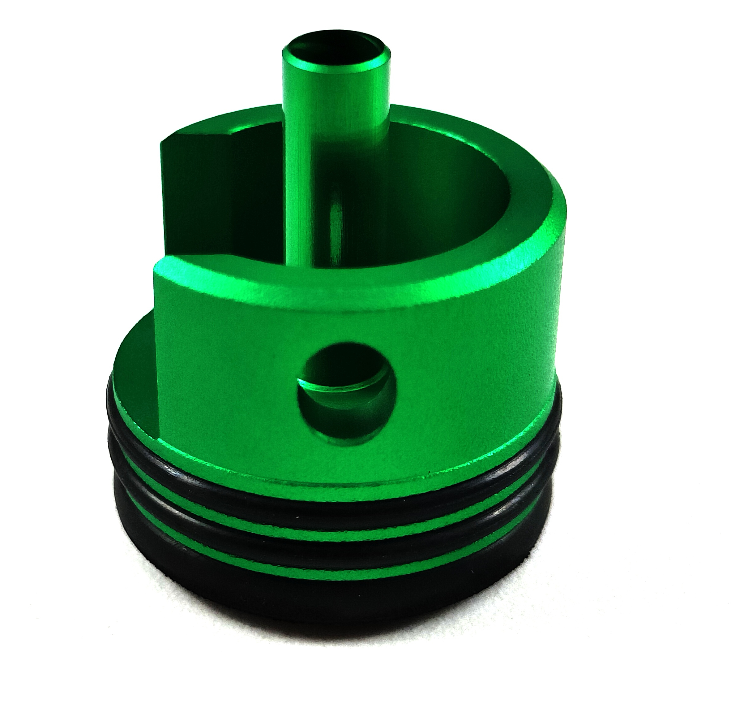 Acest cap de cilindru este conceput și construit integral în regie proprie, prin prelucrarea aluminiului la router CNC și beneficiază de un profil conic care permite înlocuirea rapidă a dumperului, iar finisajul lucios al duzei de aer conferă un extra plus de etanșare.