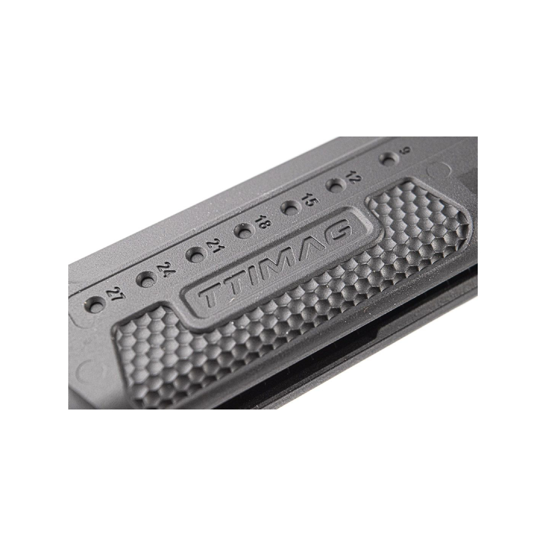 Acest încărcător TTI AIRSOFT este compatibil cu seriile WE Glock GBB și AAP-01. Având o capacitate de 26 de bile și o greutate de doar 140 g, reprezintă o opțiune ușoară și eficientă pentru nevoile tale de airsoft.